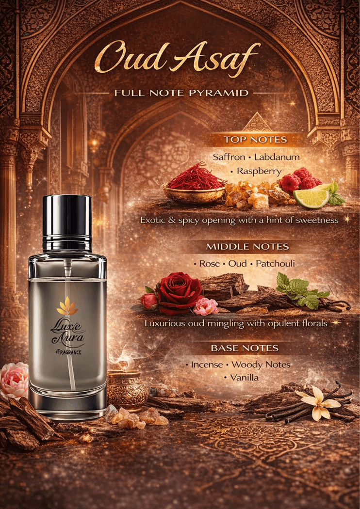 عود أساف هو عطر غني وغريب، يمزج بين المكونات الزهرية والخشبية مع قاعدة حلوة وحسية.
