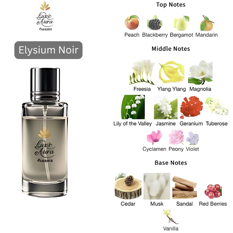 Elysium Noir is a luxurious fragrance for men, characterized by its Aromatic Fougere scent profile. The fragrance notes are divided into three layers: